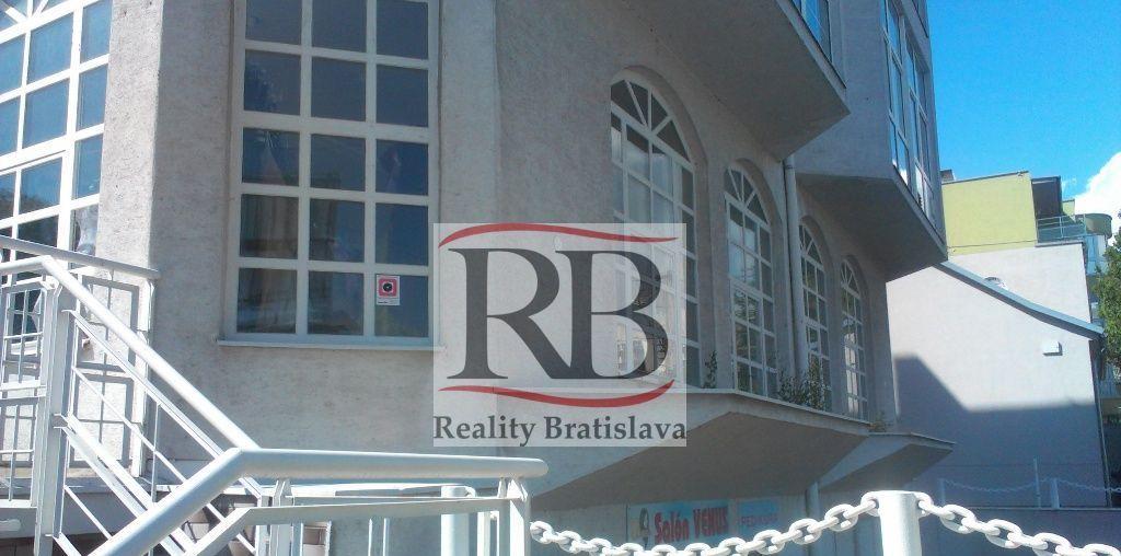 Ponúkame na prenájom zrekonštruované obchodné priestory na Bajkalskej ulici v Bratislave II - časť Ružinov. Nachádzajú sa na zvýšenom prízemí, so samostatným vstupom z ulice, vhodné napr. pre obchod / služby / administratívu. Priestor o výmere 88 m2 pozostáva z jednej veľkej miestnosti a dvoch menších. V minulosti bol využívaný ako kúpeľňové štúdio či svadobný salón s dobrým vonkajším presvetlením. Priestor je vydláždený a z časti s kobercom, zabezpečený pohybovými senzormi a alarmovým systémom, je prístupný 24 hodín, sú k nemu vyhradené sociálne priestory a disponuje malou vstupnou terasou. Nájomníkovi ponúkame v cene nájmu aj reklamný priestor na fasáde (s možnosťou osvetlenia). V prípade záujmu je možnosť prenajať si aj menšie skladové priestory v budove. Budova bola kolaudovaná v roku 1998 a nachádza sa v blízkosti hotelov, stravovacích zariadení a súkromnej strednej školy . Priamo pred priestormi je možnosť bezplatného nonstop parkovania. Cena nájmu je 12 €/m2/mesiac energie. Cena je uvedená bez DPH. Záujemca neplatí províziu. Viac informácii v našej RK.